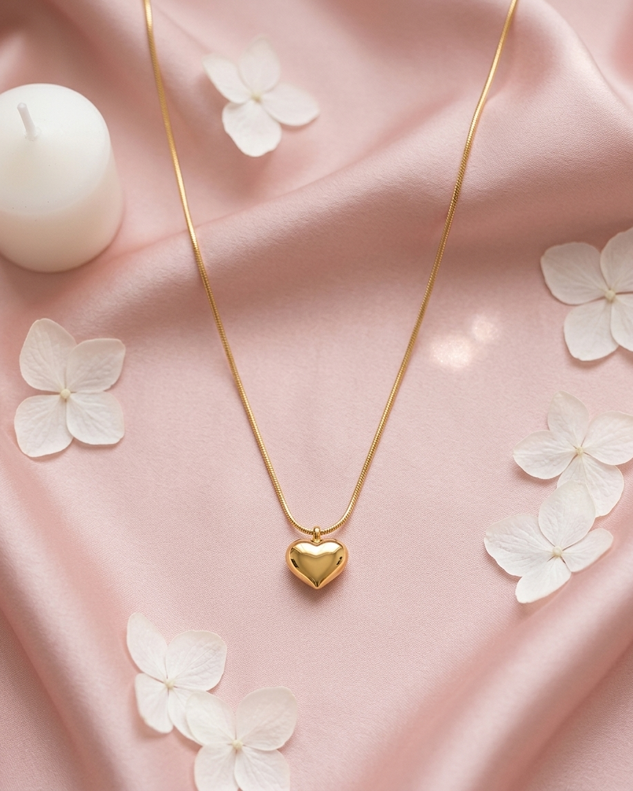 Timeless elegance in every detail. This 18K gold-plated necklace features a smooth, high-shine heart pendant, crafted from 100% waterproof and anti-tarnish materials to accompany you through every stage of your journey.