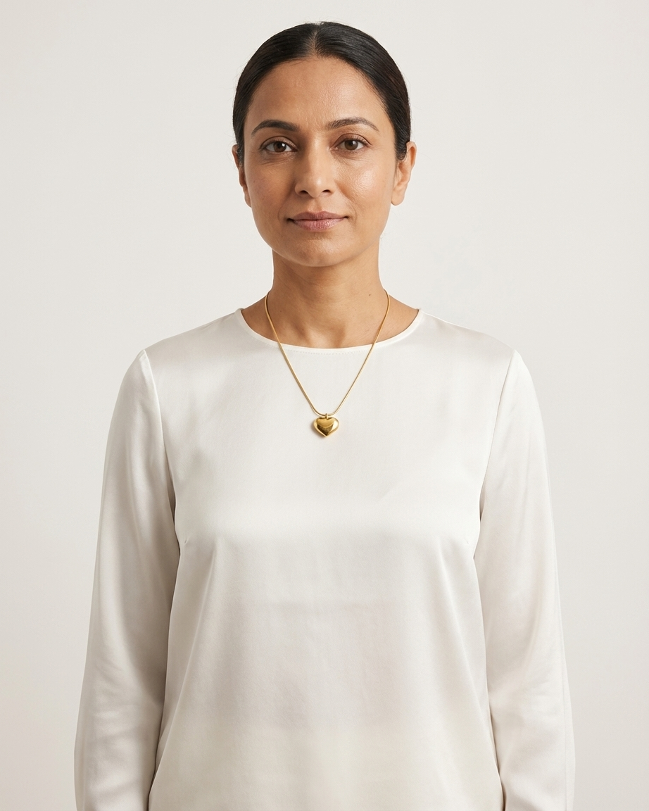Our Heart Manifestation Necklace balances high-end aesthetics with deep personal significance. The pendant features a rounded, dimensional heart silhouette with a mirror-like finish that catches the light from every angle. Suspended from a durable, slender chain, this piece is engineered for continuous wear—offering a sophisticated look for professional settings while remaining durable enough for an active lifestyle. Whether worn as a reminder of your path or as a chic everyday staple, it adds a layer of quiet luxury to any ensemble.