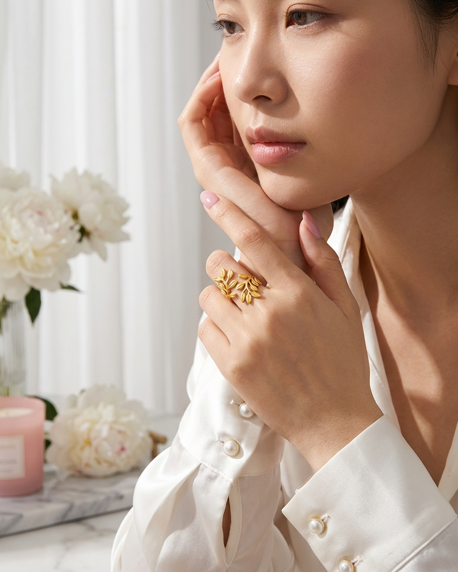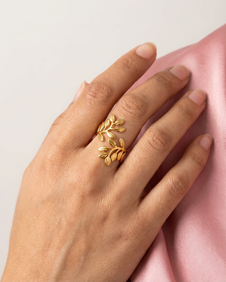 Our Laurel Leaf Wrap Ring is designed for the modern woman who finds inspiration in the organic beauty of nature. Moving away from standard closed bands, this ring utilizes a bypass “wrap” silhouette that mimics a real climbing vine. The intricate detailing on each leaf captures the light beautifully, while the open-ended design ensures a comfortable, adjustable fit for any finger.