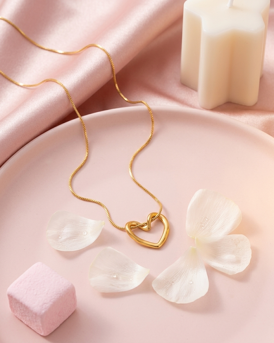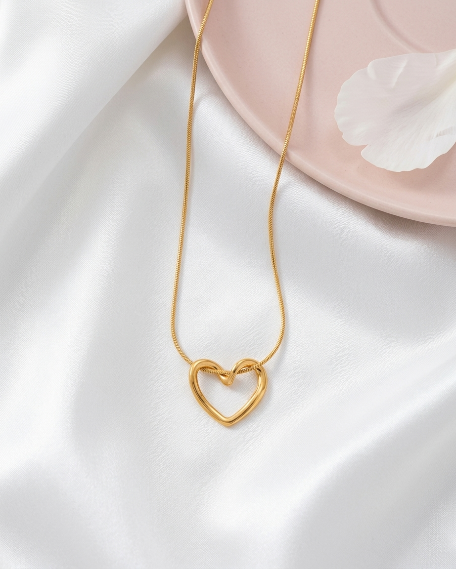 Be the first to review “18K Gold Plated Molten Heart Slider Necklace | Anti-Tarnish Wavy Heart Pendant on Sleek Snake Chain”