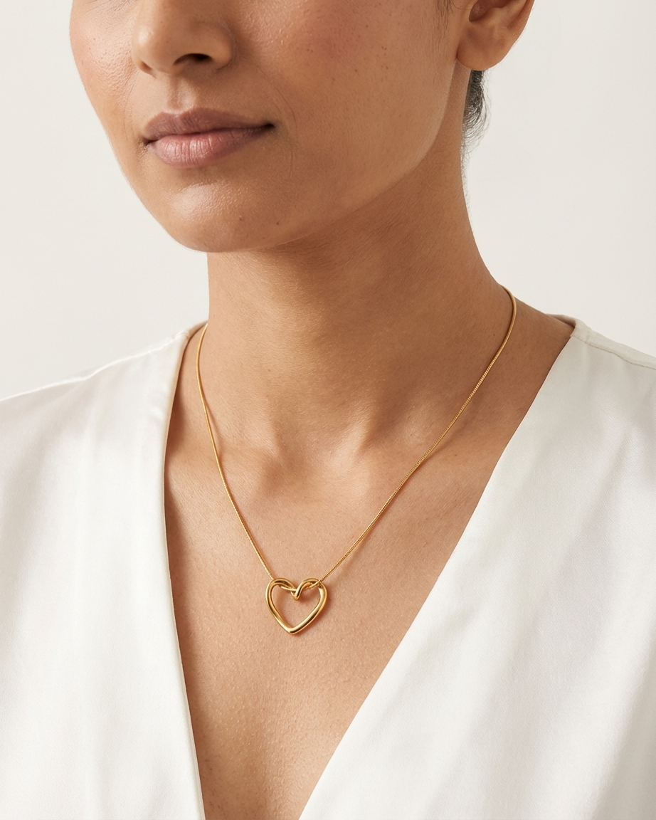 Our Molten Heart Slider Necklace is for the woman who loves jewelry with a hand-crafted feel. Moving away from rigid, perfect shapes, this pendant features an organic, wavy silhouette that mimics the appearance of liquid gold. The “slider” design allows the heart to move freely along a premium snake chain, creating a dynamic piece that feels as good as it looks.