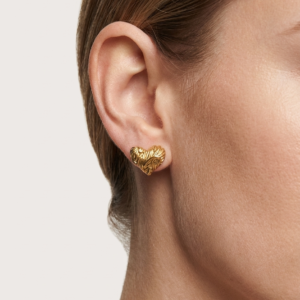 Artistic romance in high-shine gold. These 18K gold-plated stud earrings feature an organic, molten-texture 3D heart design, finished with a premium anti-tarnish coating for effortless, life-proof elegance.