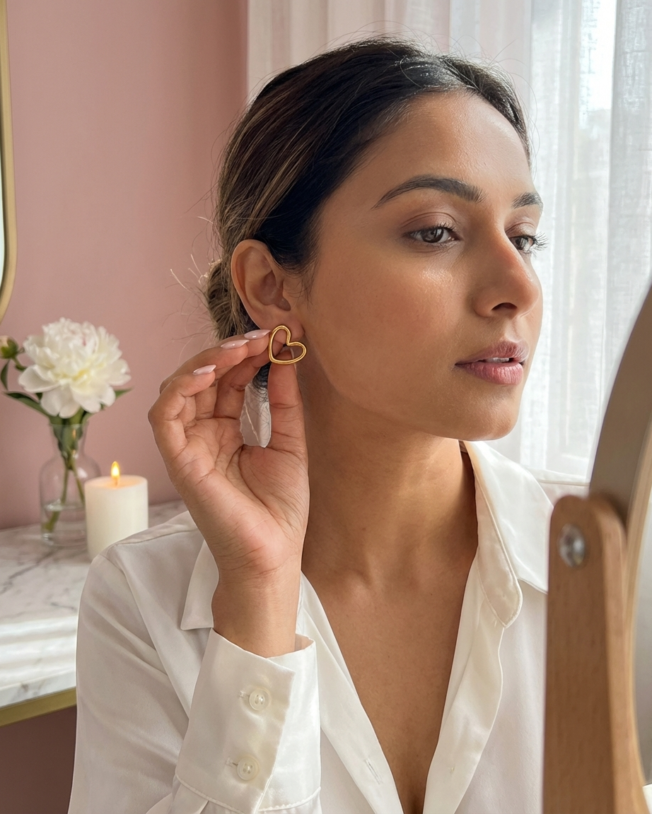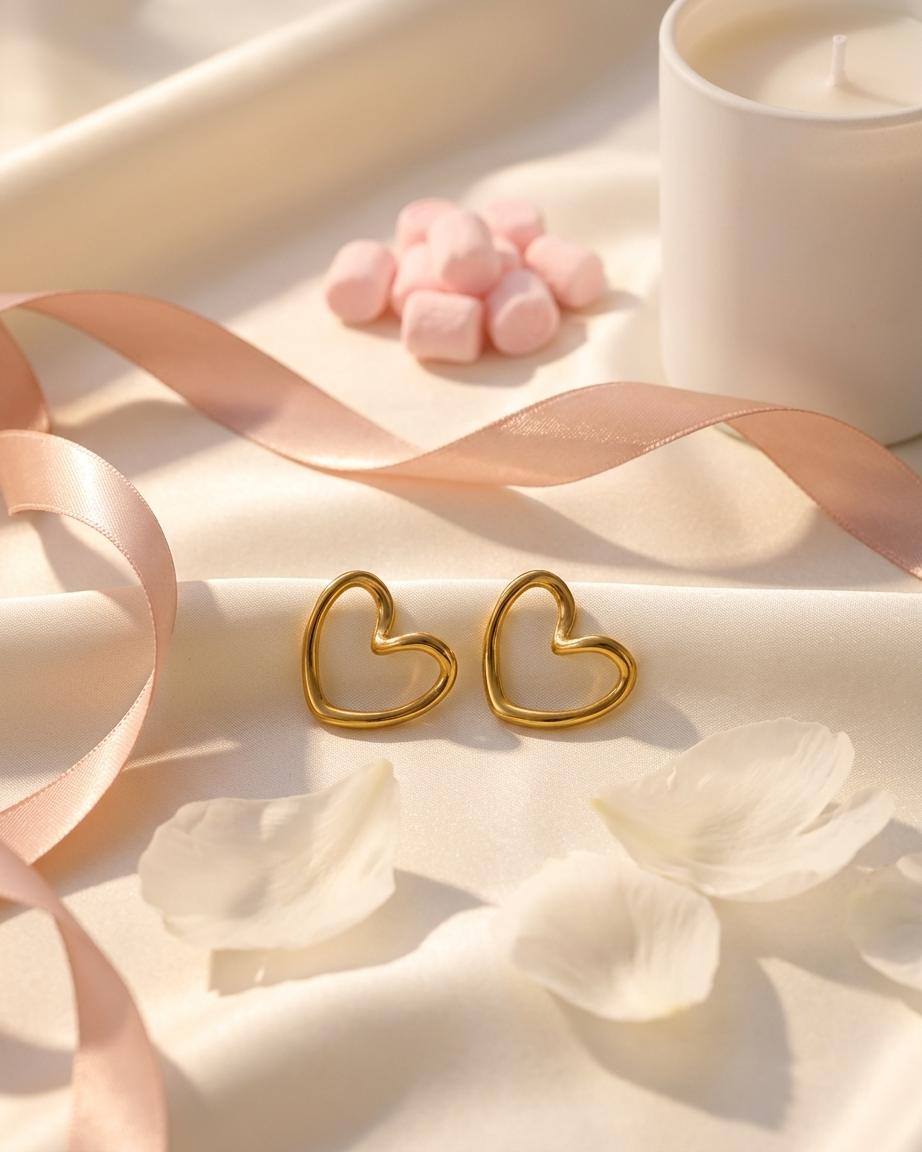 Elevate your “Clean Girl” aesthetic with our Molten Heart Stud Earrings. Moving away from traditional, symmetrical shapes, these earrings feature an abstract, wavy border that gives them a contemporary, artisanal feel. Whether you’re heading to the clinic, the office, or a coffee date, these studs provide a subtle golden glow that complements any look.