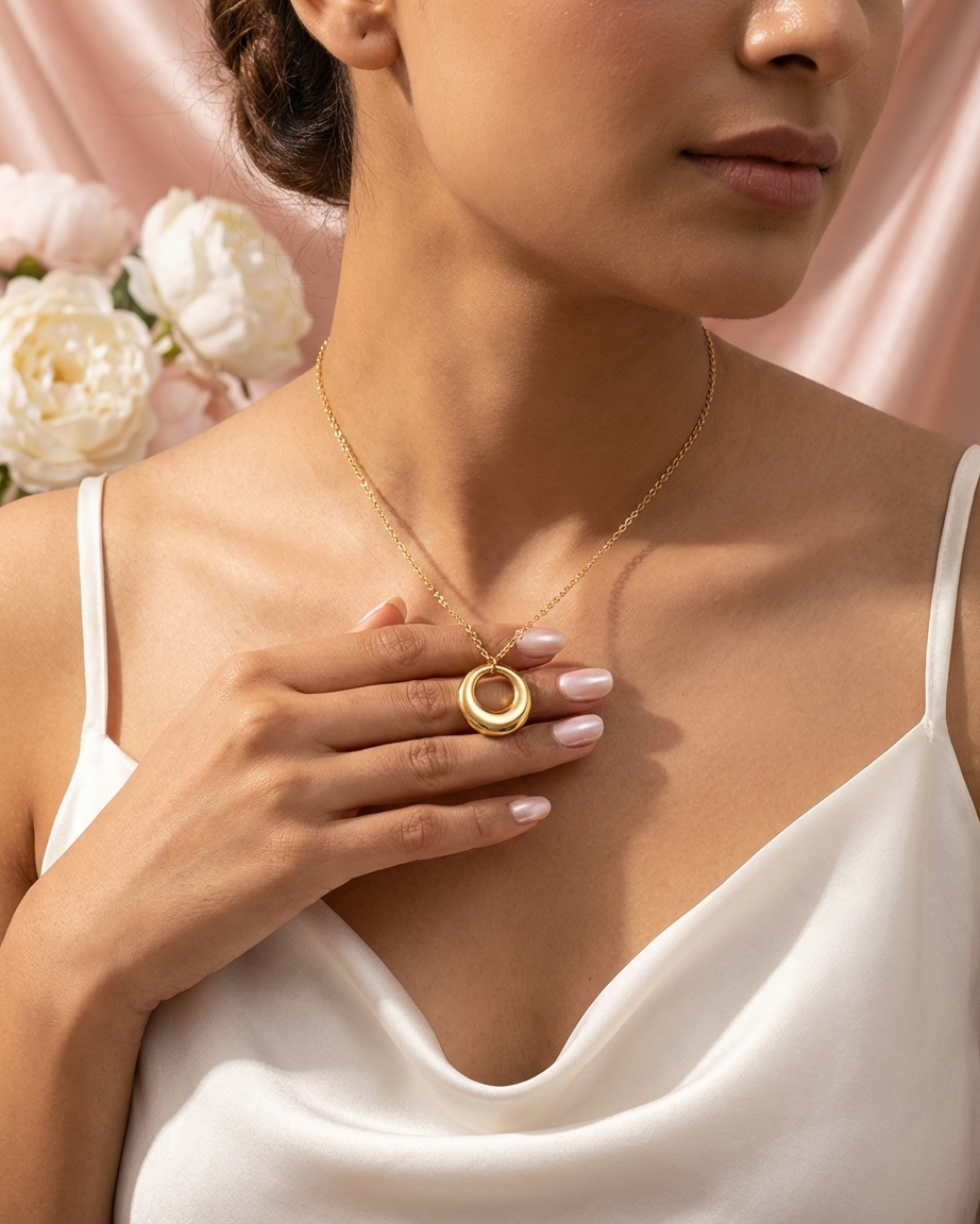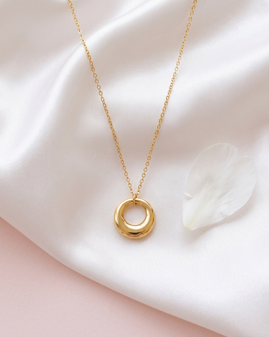 Our Polished Organic Circle Pendant redefines the classic round necklace with a contemporary, sculptural twist. Moving away from perfect geometric circles, this piece features a slightly varied thickness and rounded edges for an artisanal “molten” feel. Suspended from a delicate yet durable chain, the pendant slides freely, offering a dynamic and comfortable fit. Whether worn solo for a “Quiet Luxury” statement or layered with other gold chains, it provides a polished finishing touch to both professional and casual ensembles.