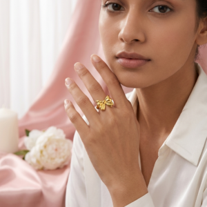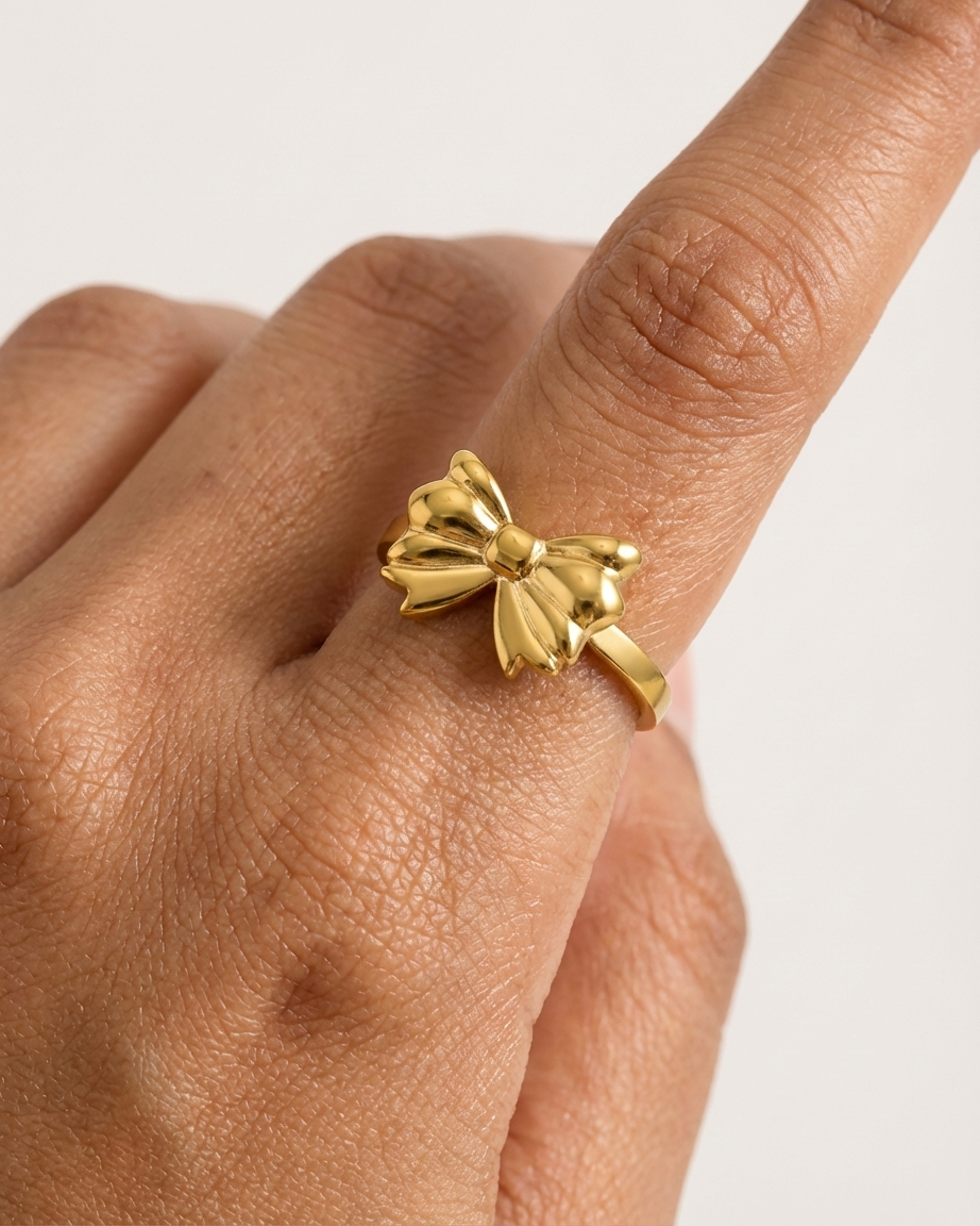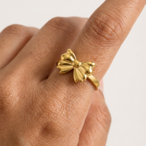 Be the first to review “18K Gold Plated Sculpted Bow Ring | Anti-Tarnish 3D Ribbon Statement Ring | Waterproof Adjustable Coquette Aesthetic Jewelry”