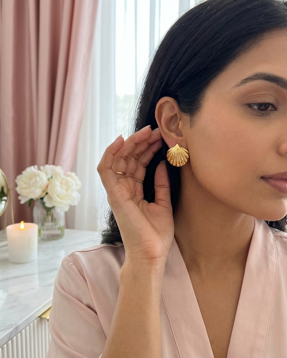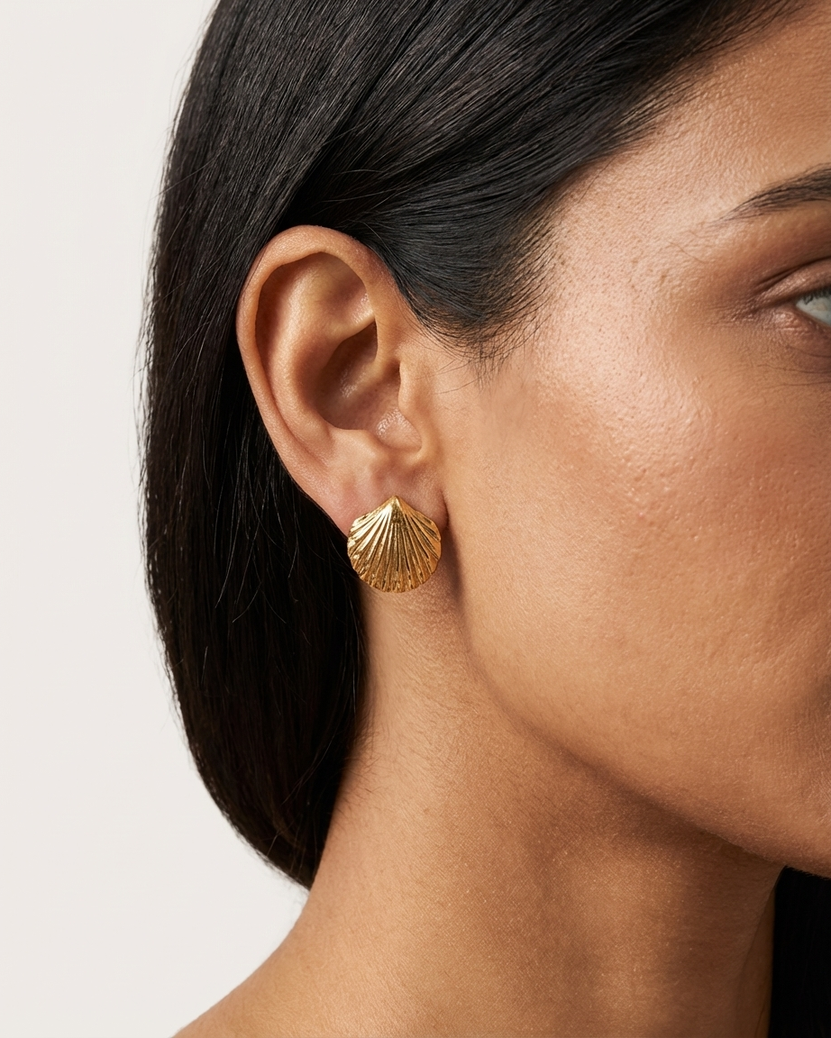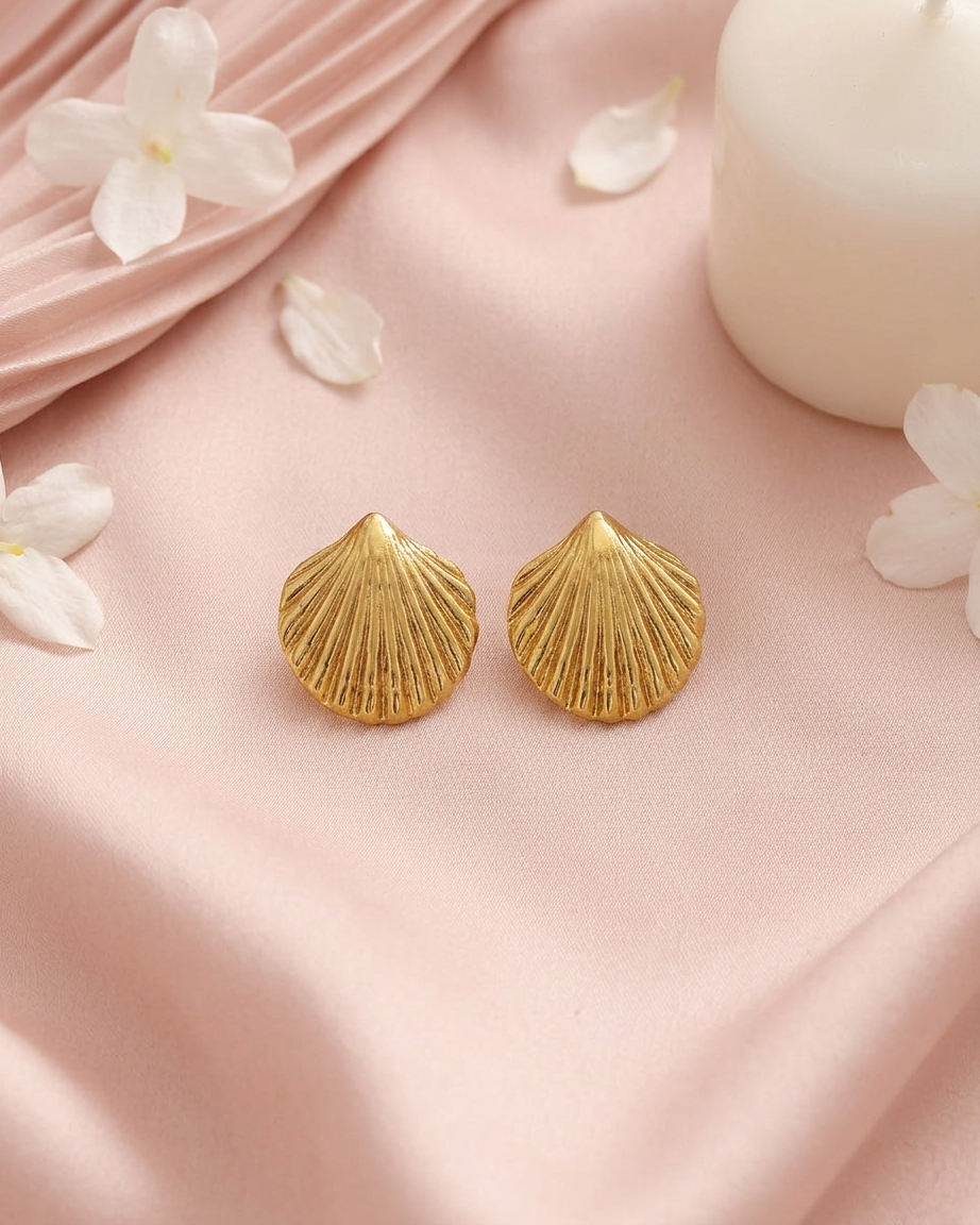 Our Shell-Shaped Stud Earrings are designed for the modern woman who values both style and substance. Moving away from standard flat designs, these earrings feature an intricate, ribbed scallop texture that adds beautiful dimension and captures the light from every angle. Crafted from premium stainless steel and finished with a heavy 18K gold plating, they provide the luxury look of fine jewelry with the rugged durability needed for 24/7 wear.