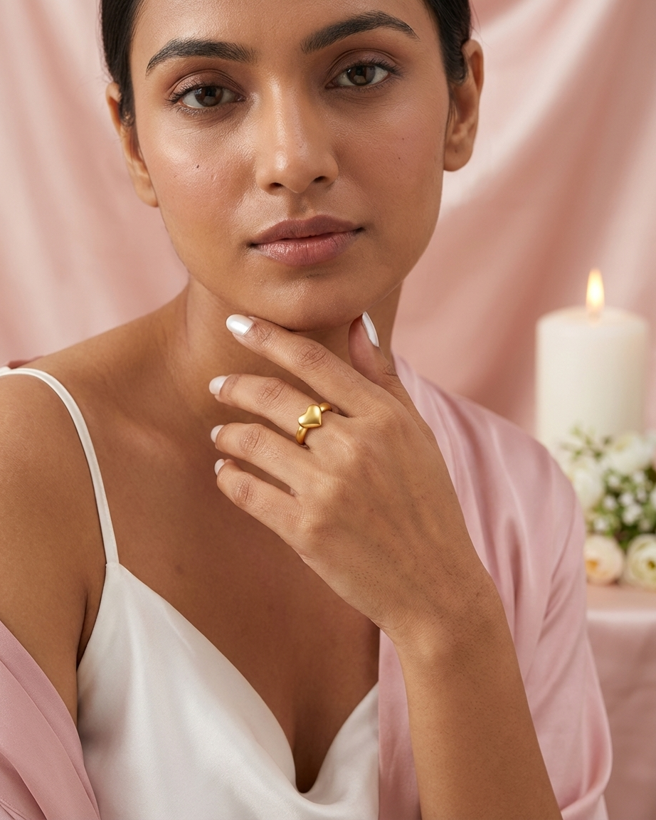 Our Textured Molten Heart Studs are designed for those who appreciate jewelry with a hand-crafted, editorial feel. The “crumpled” or molten texture mimics the look of raw, poured gold, catching and diffusing light in a way that smooth jewelry cannot. Their substantial 3D shape provides beautiful dimension on the ear, making them a perfect standalone statement or a high-texture addition to a curated ear stack.