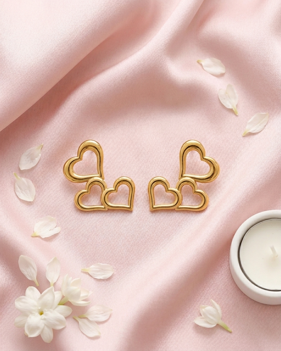 Elevate your everyday look with our Triple Heart Studs. Perfect for the “Soft Girl” or “Coquette” aesthetic, these earrings provide more impact than a simple stud while remaining minimalist enough for the office or gym.
