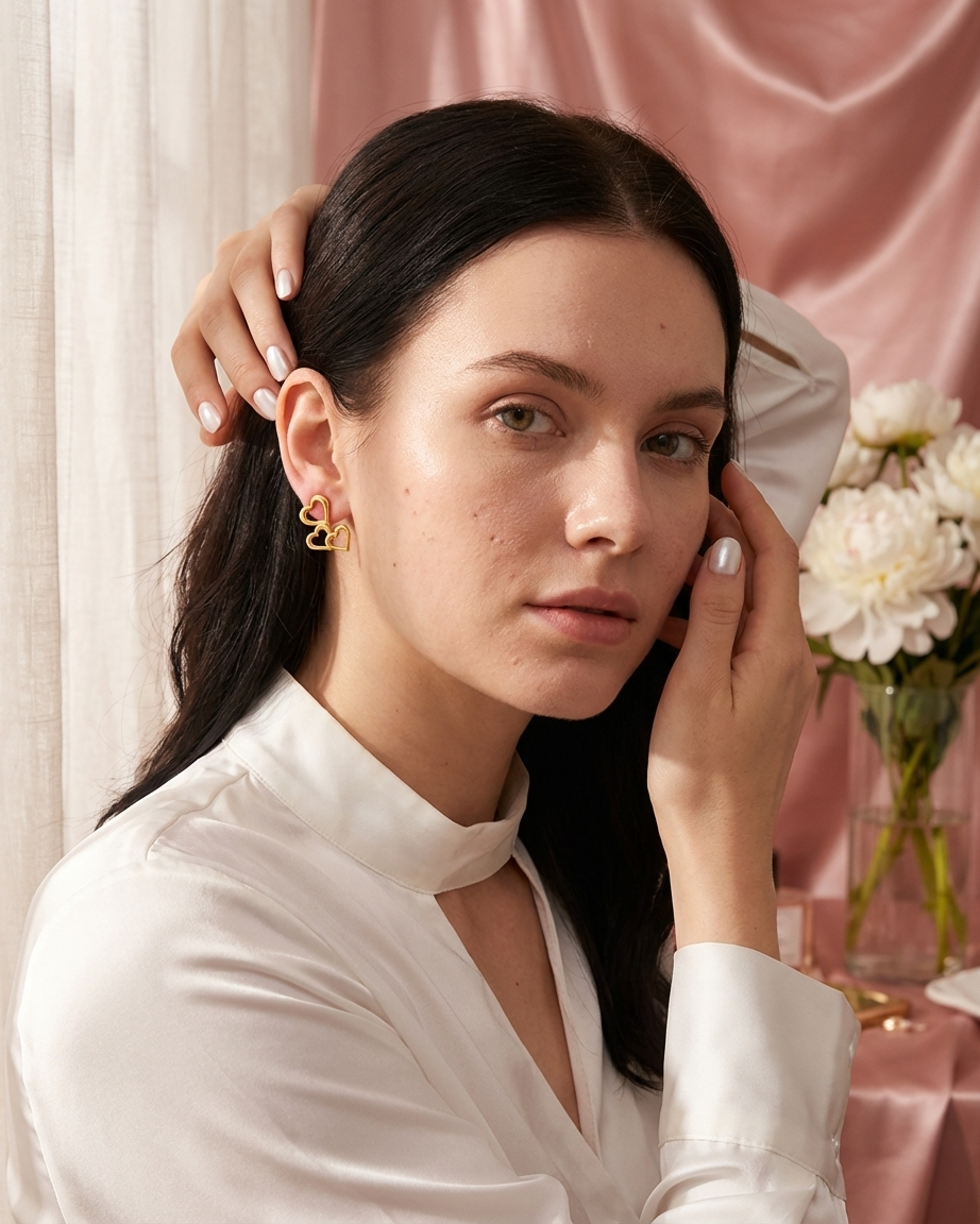 Unique Silhouette: The heart cluster follows the natural curve of the earlobe for a flattering, modern fit.