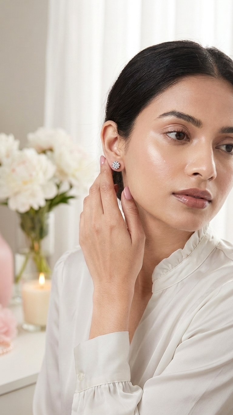 Elevate your jewelry collection with our American Diamond Crushed Ice Studs. Unlike standard round cuts, the “Crushed Ice” technique uses extra facets to create a multidimensional, shimmering effect that mimics the interior of a natural diamond. Set in high-quality silver plating, these studs are the definition of “quiet luxury.”