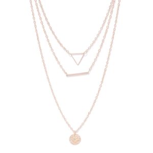 Step up your fashion game with the Fashionable Geometric Multi-Layered Necklace, a bold yet versatile statement piece. The layered chains are elegantly designed with minimalist geometric charms, giving it an avant-garde aesthetic perfect for modern styling. Whether you’re layering it over a power suit or a casual turtleneck, this necklace instantly elevates any look. Its gold-plated finish adds a hint of luxury while keeping the design minimal enough for everyday wear.