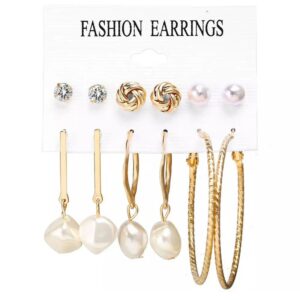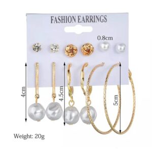 •Design: A mix of studs, hoops, and drop earrings in white and gold tones