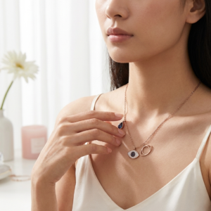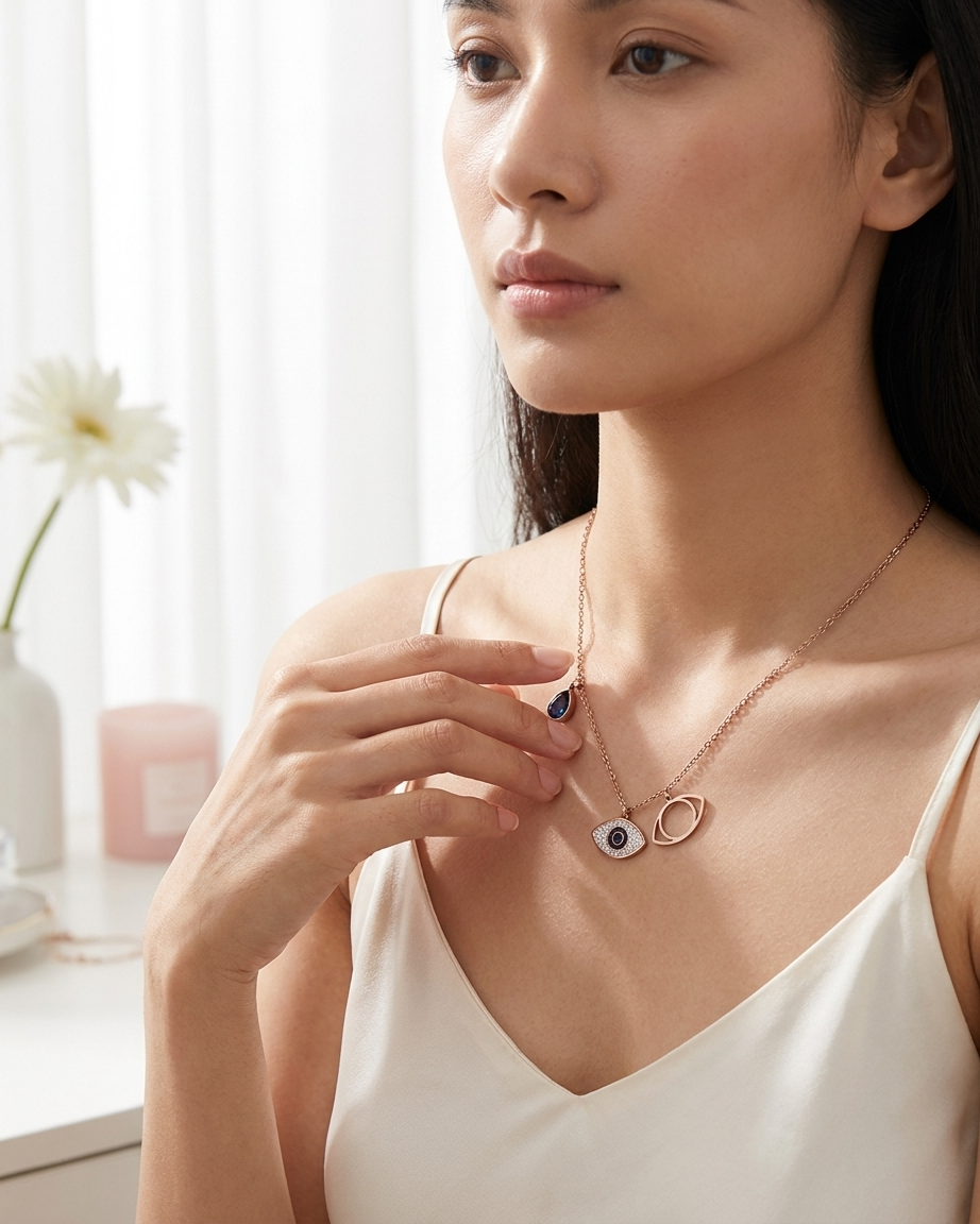 Symbolic Tri-Charm Design: Combines three unique elements—the protective evil eye, the intuition-focused teardrop, and a minimalist eye frame—for a balanced narrative.