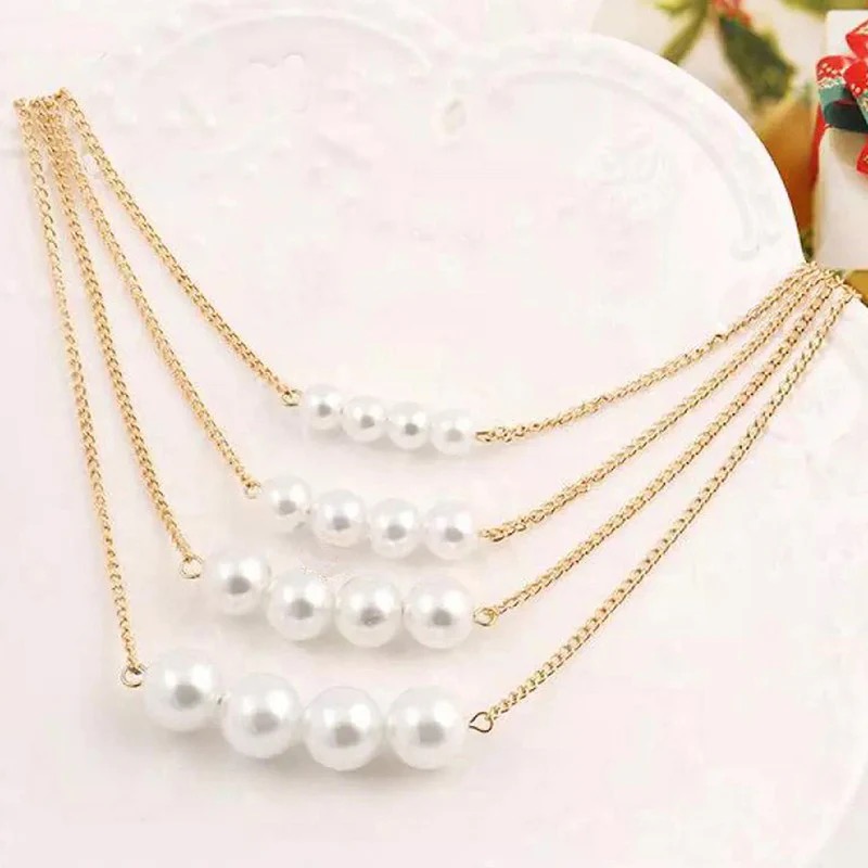 •Design: Multi-layered strands with pearl accents